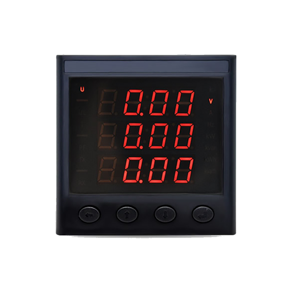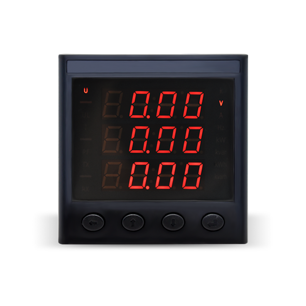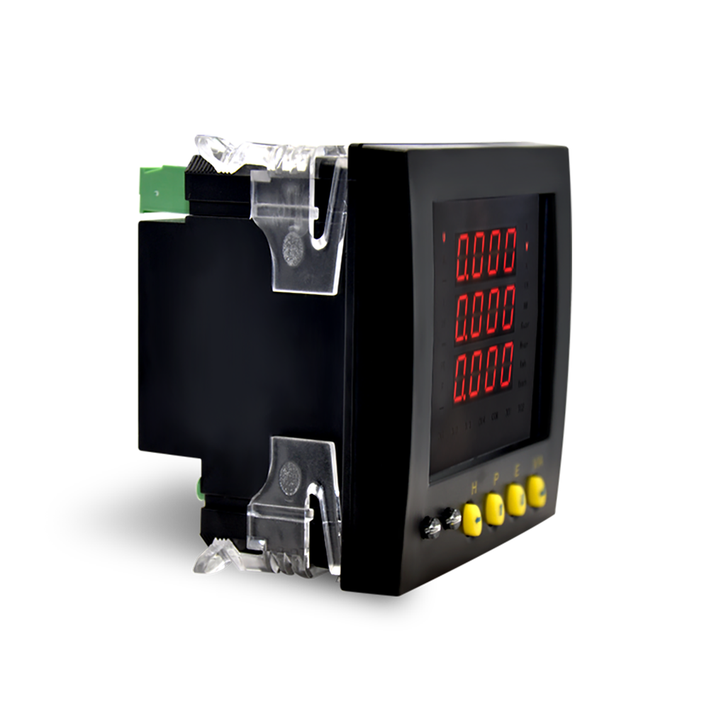 本系列產品是我公司開發的智能高端電力網絡儀表。它可高精度測量三相電壓、平均電壓、零序電壓、9回路三相電流、9回路有功功率、9回路無功功率、9回路視在功率、9回路功率因數、9回路三相有功電能、9回路三相無功電能、九回路單相電能等。2路485通信接口支持標準Modbus-RTU通信協議。