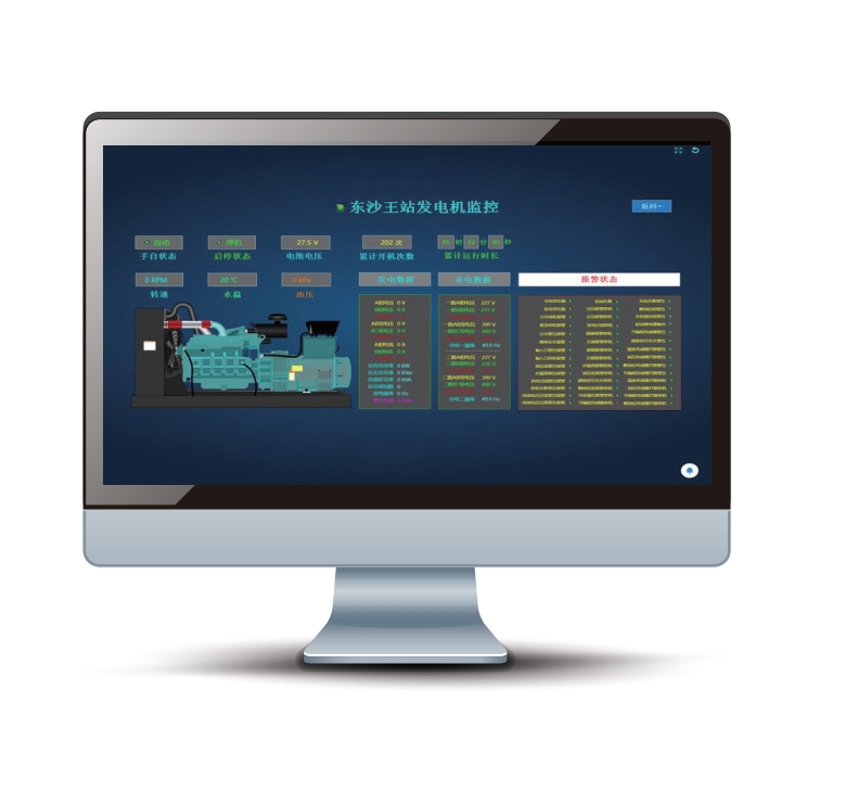 應急發電機集中監控系統由發電機監控裝置和集中監控中心組成。發電機監控裝置采集每臺發電機、發動機的數據以及運行工況,通過無線或者有線的通訊方式實時傳輸至集中監控中心。 集中監控中心可集中監控發電機的運行工況,并將采集的數據進行存儲,形成歷史報表、歷史曲線;實現遠程參數設置、遠程啟停發電機;設備自動化管理,切實保障應急發電機的正常運行。