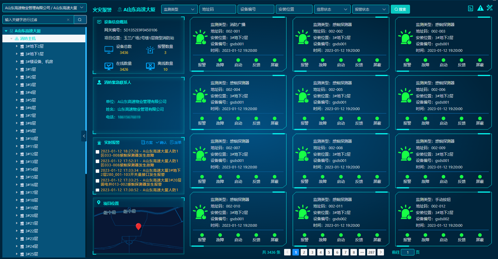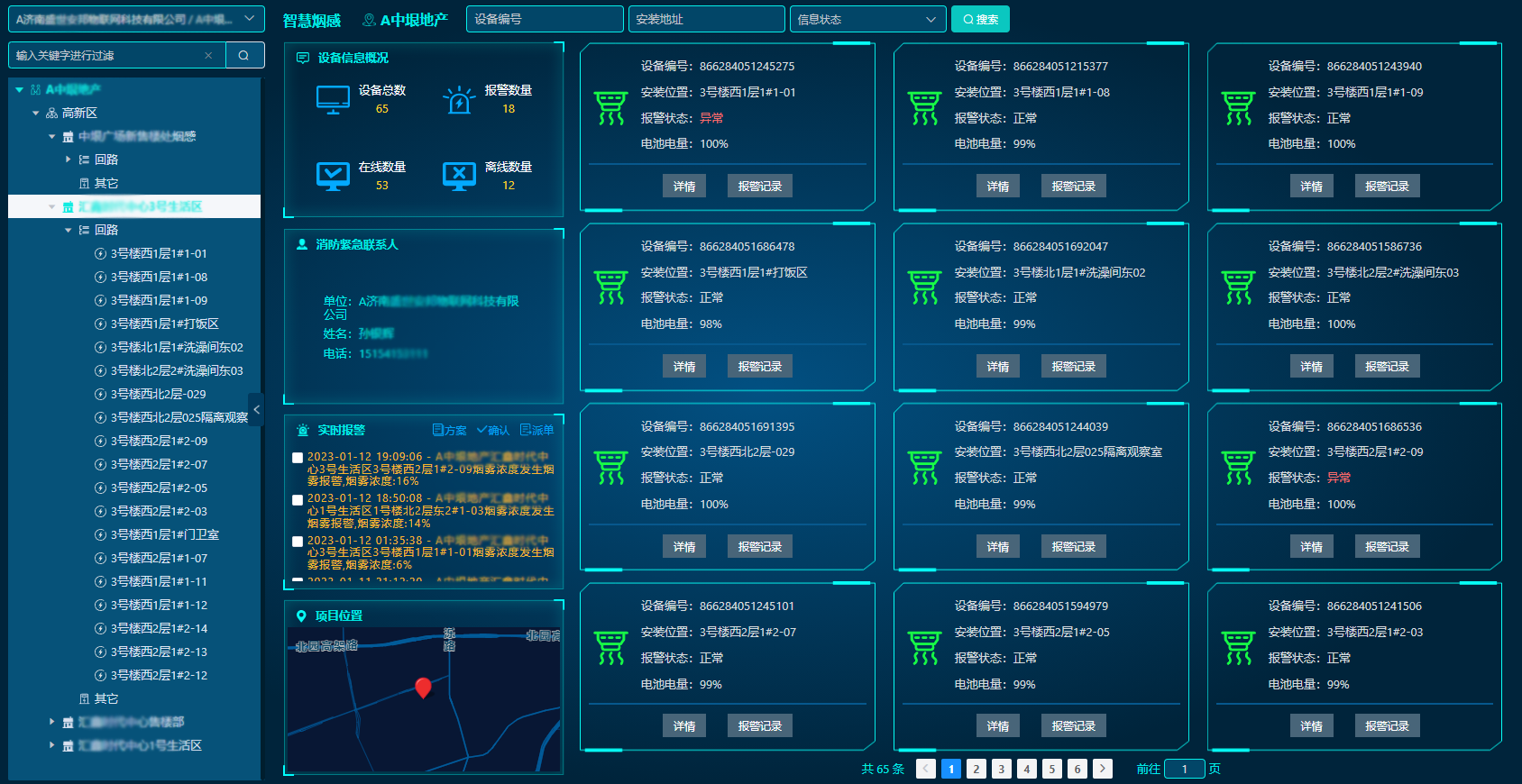 實時采集聯網建筑物內前端感知設備(如:感煙、感溫、可燃氣體等)的報警信息和運行狀態信息,隨時隨地查看傳感器信息,及時發現前端消防設施存在的各種故障及安全隱患。