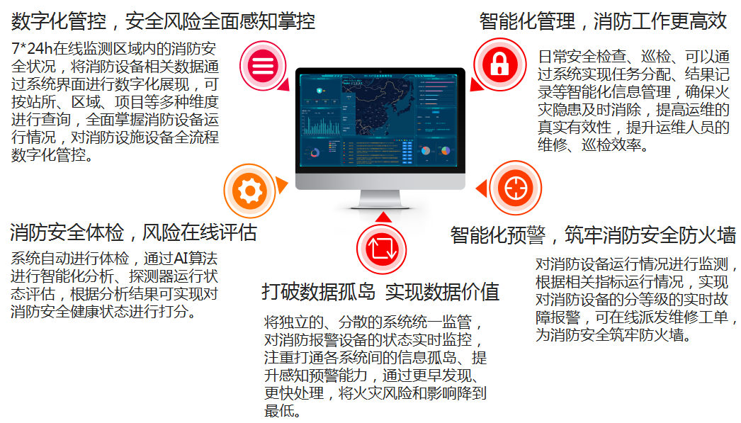 消防安全無小事,防范未然最重要,消防安全監控系統,實現動態預警,及時管控風險,切實加強了對火災事故隱患的源頭管控,最終實現消防工作從“被動查詢、孤立響應”到“主動防護、全面掌控”的根本性轉變,全面提高消防技防水平,為筑牢消防安全防線貢獻數智力量。
