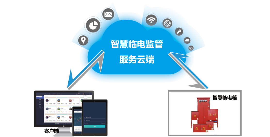 簡介: HY智慧臨電監(jiān)管服務(wù)系統(tǒng)通過新一代物聯(lián)網(wǎng)技術(shù)對(duì)引發(fā)電氣隱患的主要因素(導(dǎo)線溫度、電流、電壓、漏電流、開關(guān)門狀態(tài)等)進(jìn)行不間斷的數(shù)據(jù)跟蹤與統(tǒng)計(jì)分析,實(shí)時(shí)發(fā)現(xiàn)電氣線路和重要用電設(shè)備存在的安全隱患,經(jīng)云平臺(tái)大數(shù)據(jù)分析,即時(shí)向安全管理人員、專職電工等發(fā)送預(yù)警信息,指導(dǎo)其開展隱患治理,達(dá)到消除潛在的電氣隱患危險(xiǎn),實(shí)現(xiàn)“防患于未然”的目的。